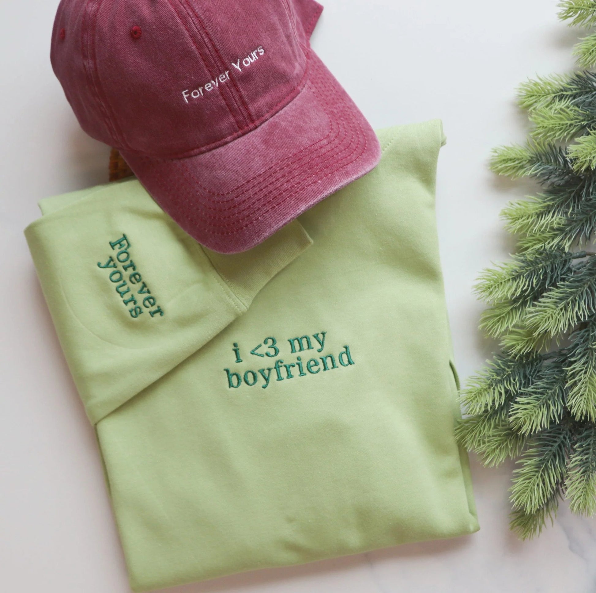 パーソナライズされた刺繍入りスウェットシャツ パーカー 袖にイニシャル、カップル ギフト バレンタインデー 彼へのギフト 彼女への永遠のあなたのもの あなたは私のもの