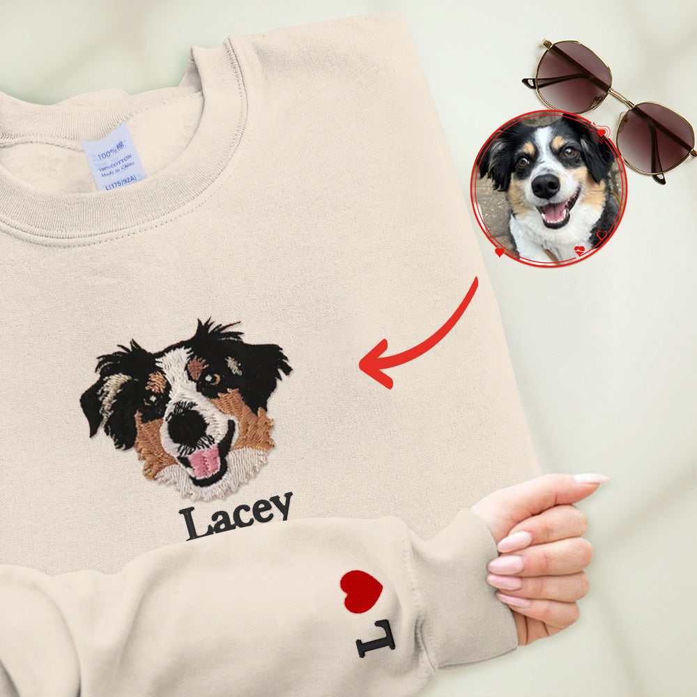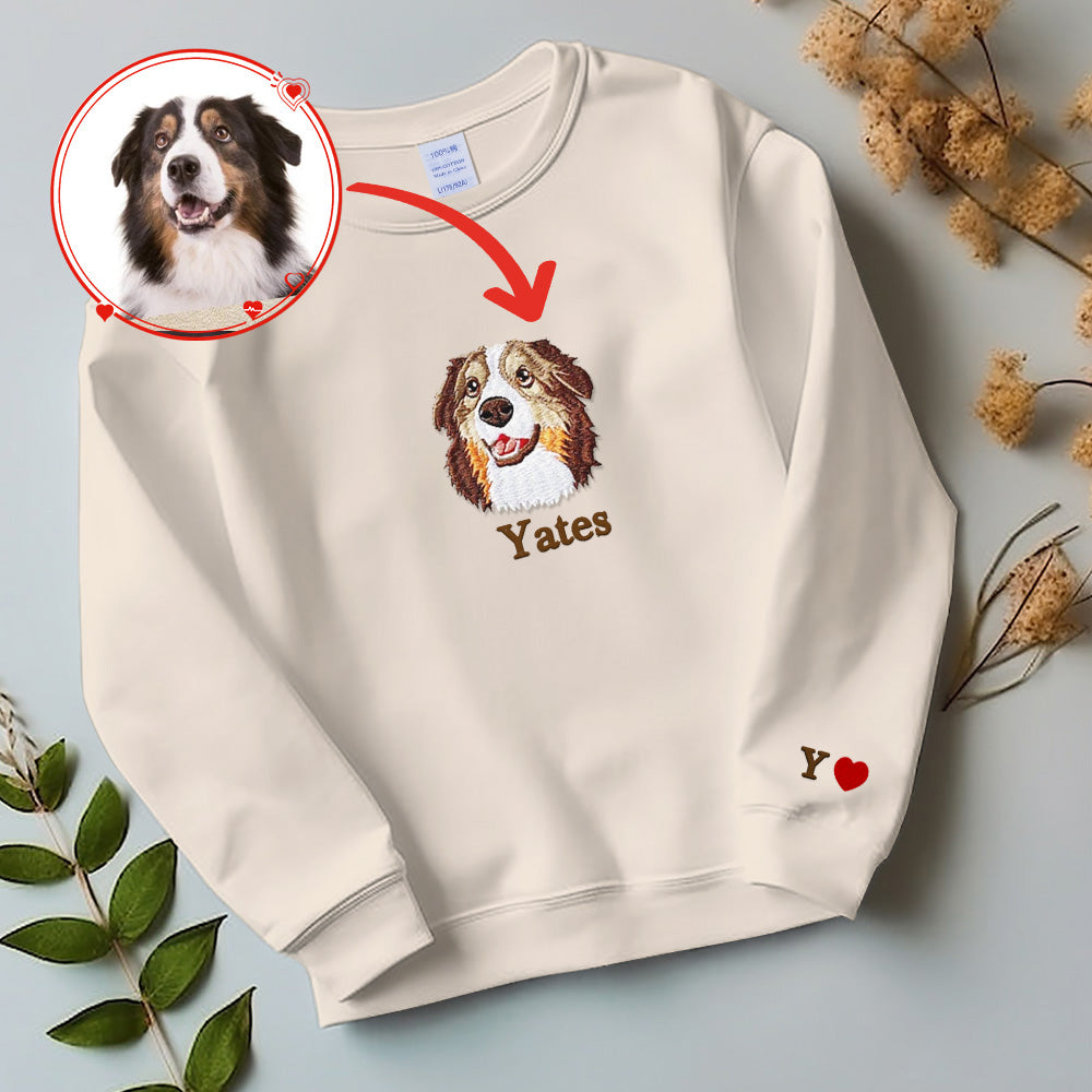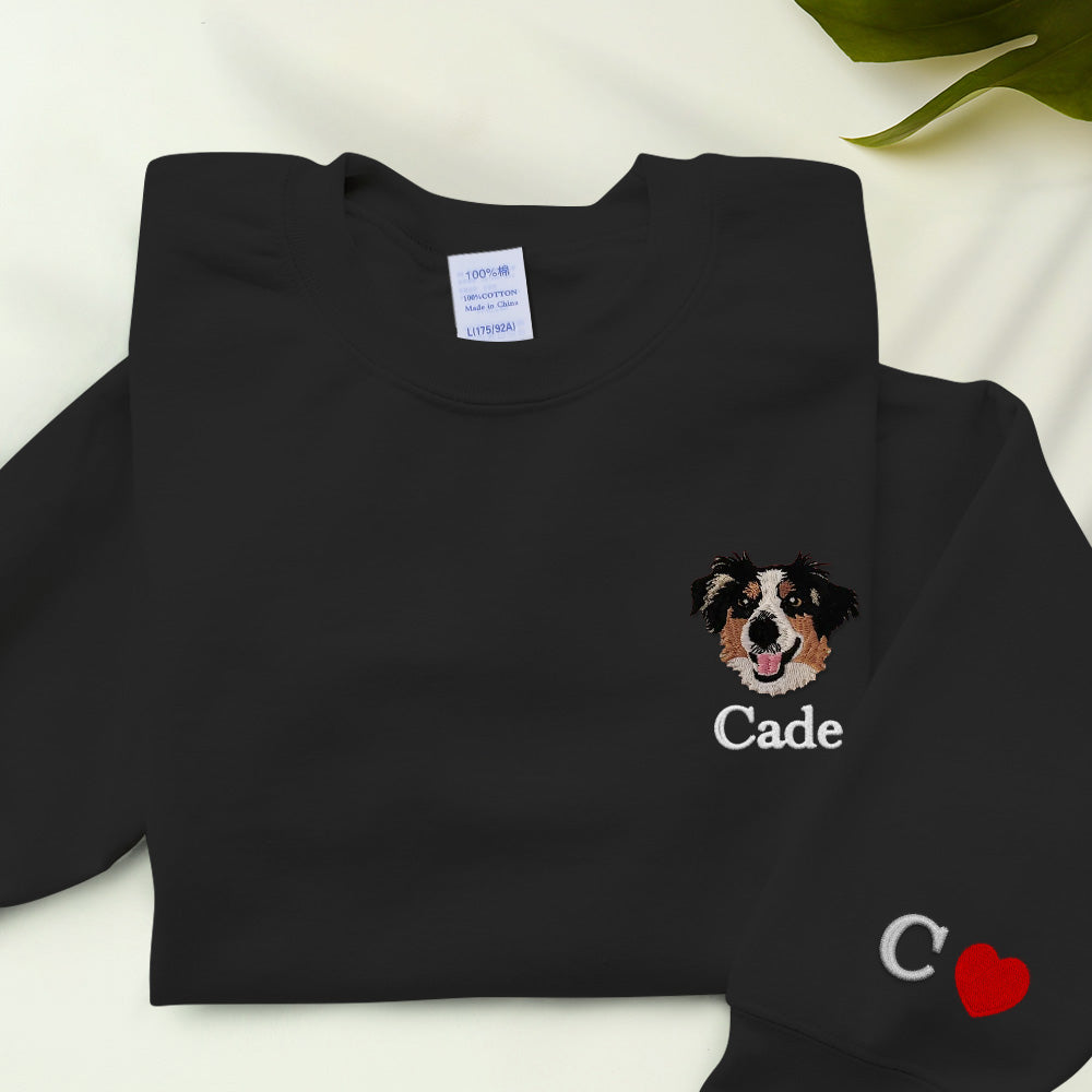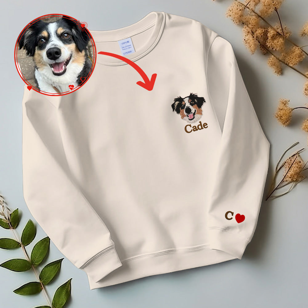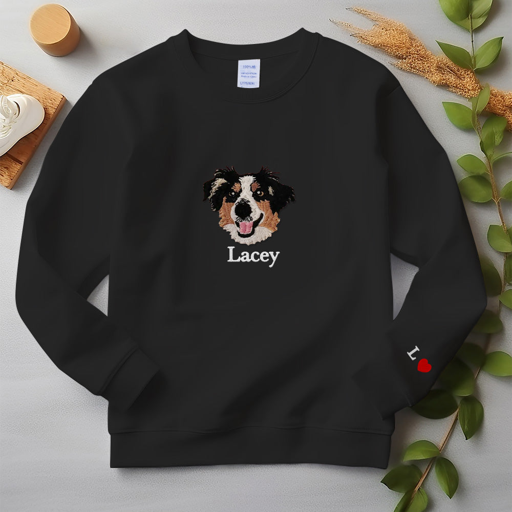 ペットの刺繍入りスウェットシャツ。ユニセックスのペットの刺繍Tシャツ。ペットのポートレートを刺繍した服。カスタムペットスウェットシャツ。犬の散歩プレゼント