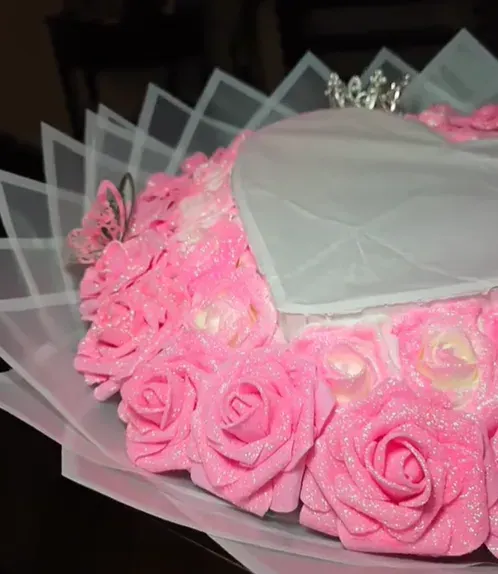 輝きを贈る: 光り輝くラメの花で作られた、永遠に続く素晴らしいブーケを贈ります。