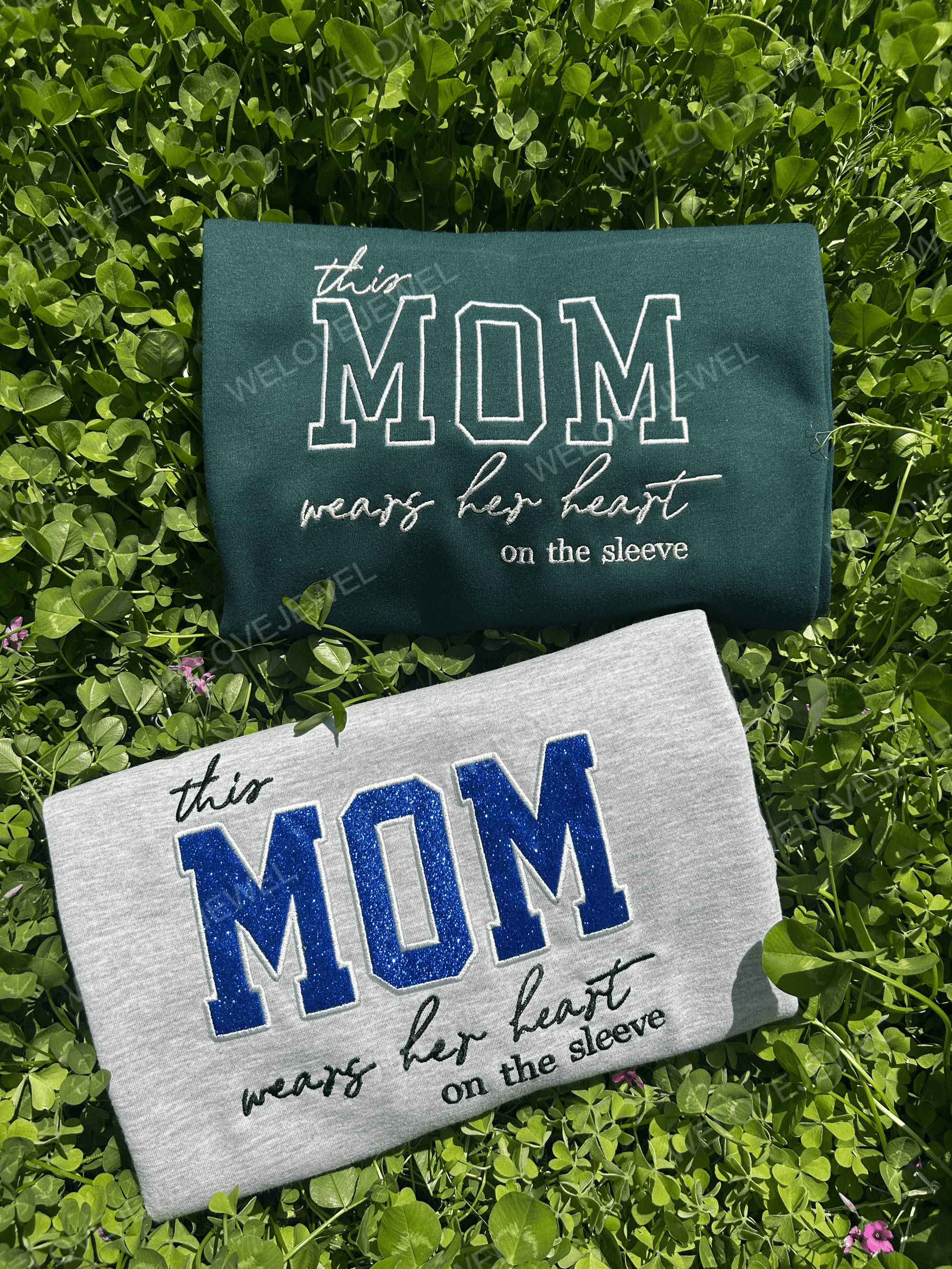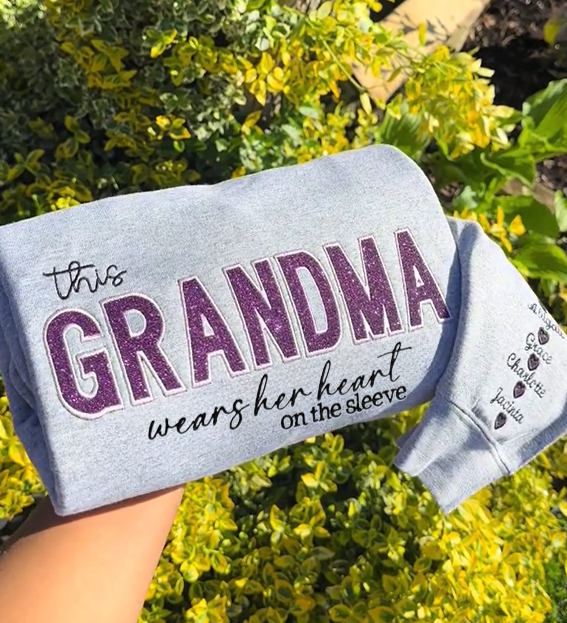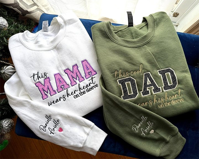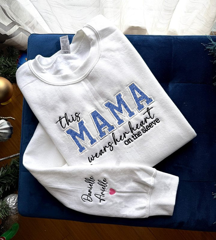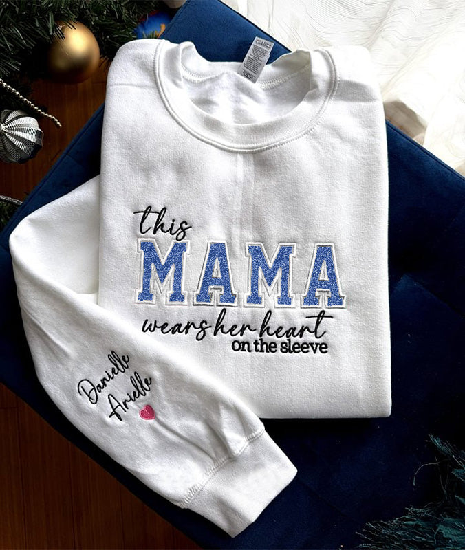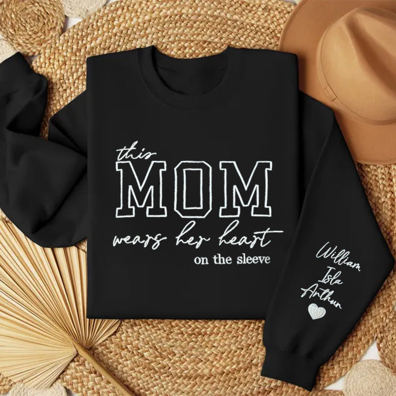 「Mom Wears Her Heart on Her Sleeves」- カスタム刺繍入り